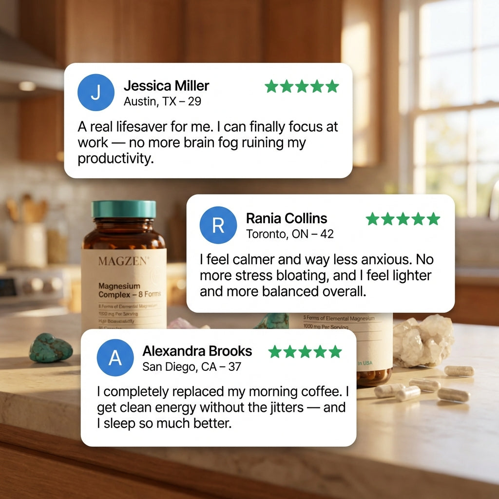 Data collected from 1,247 verified customers who used MAGZEN Magnesium Complex for at least 30 days. Adults aged 35–65. Collected 2024. Individual results may vary.